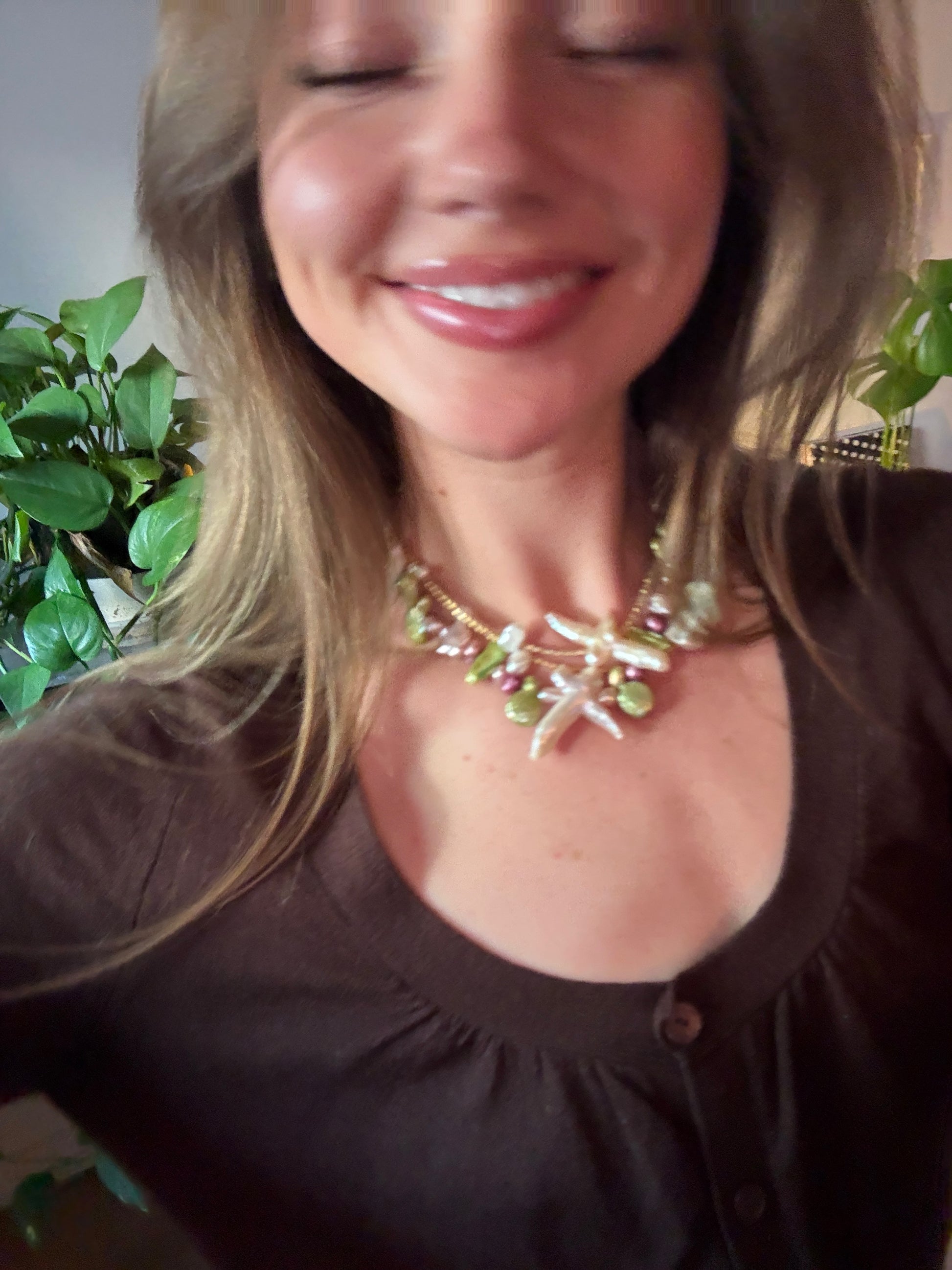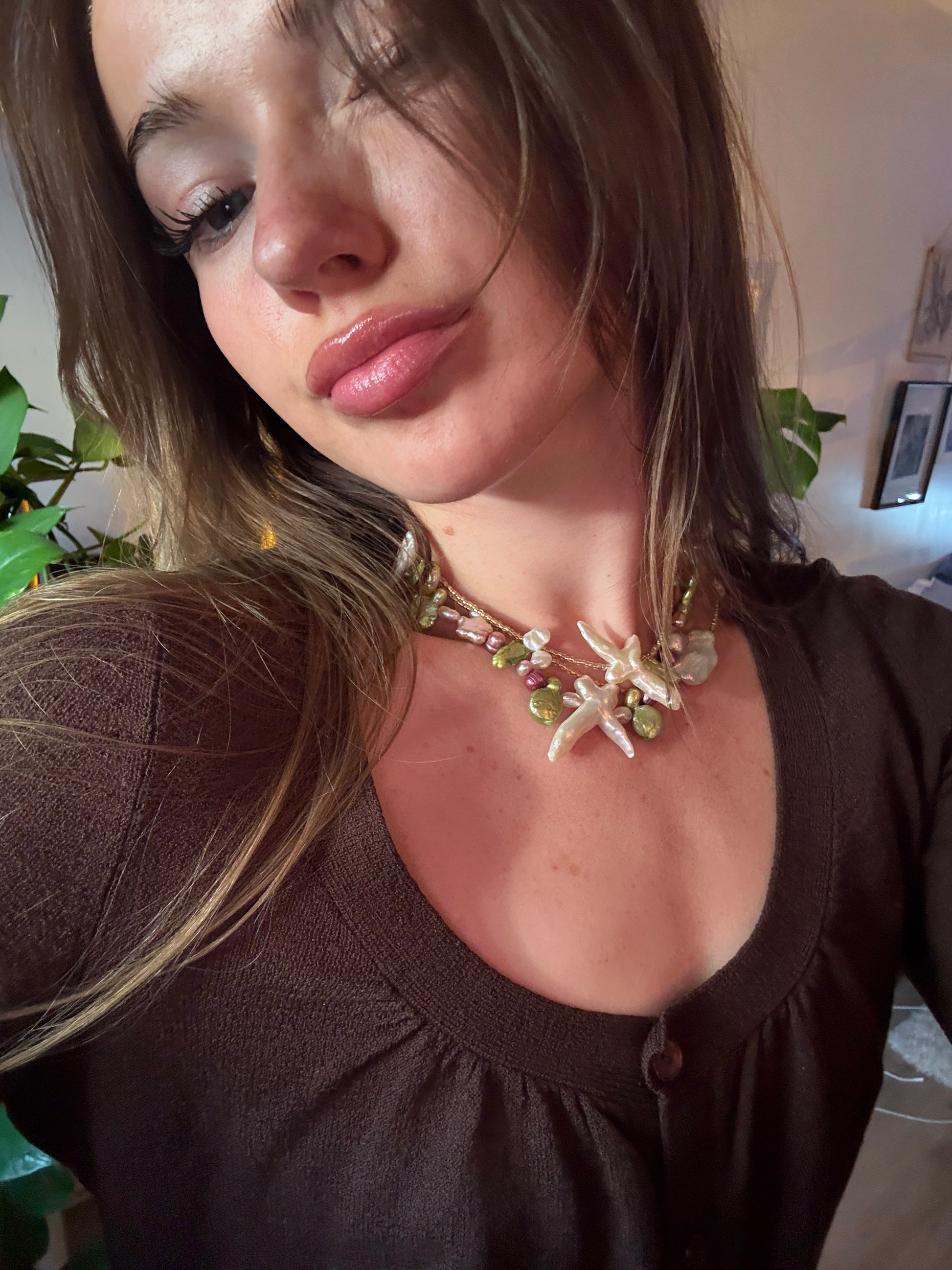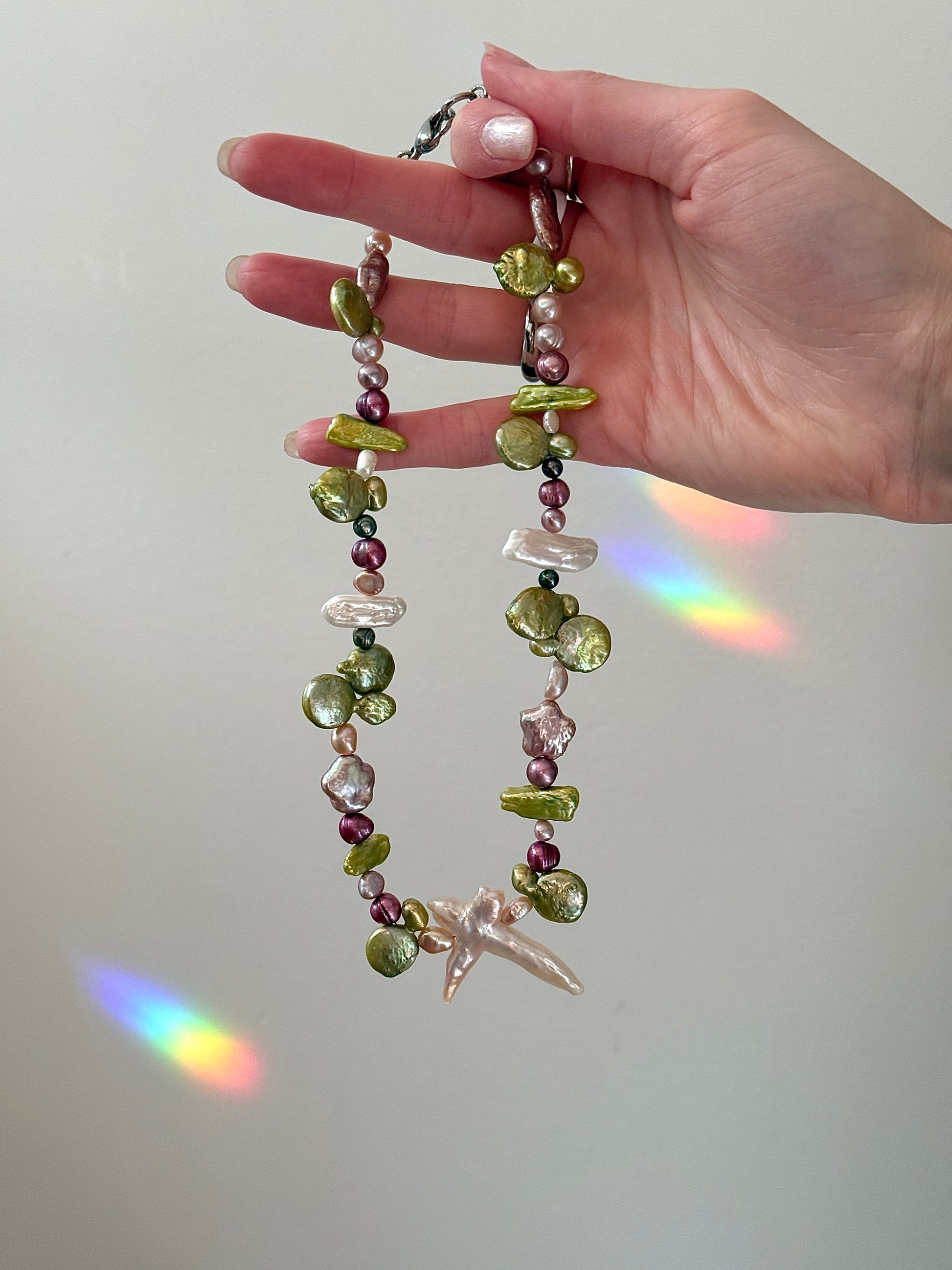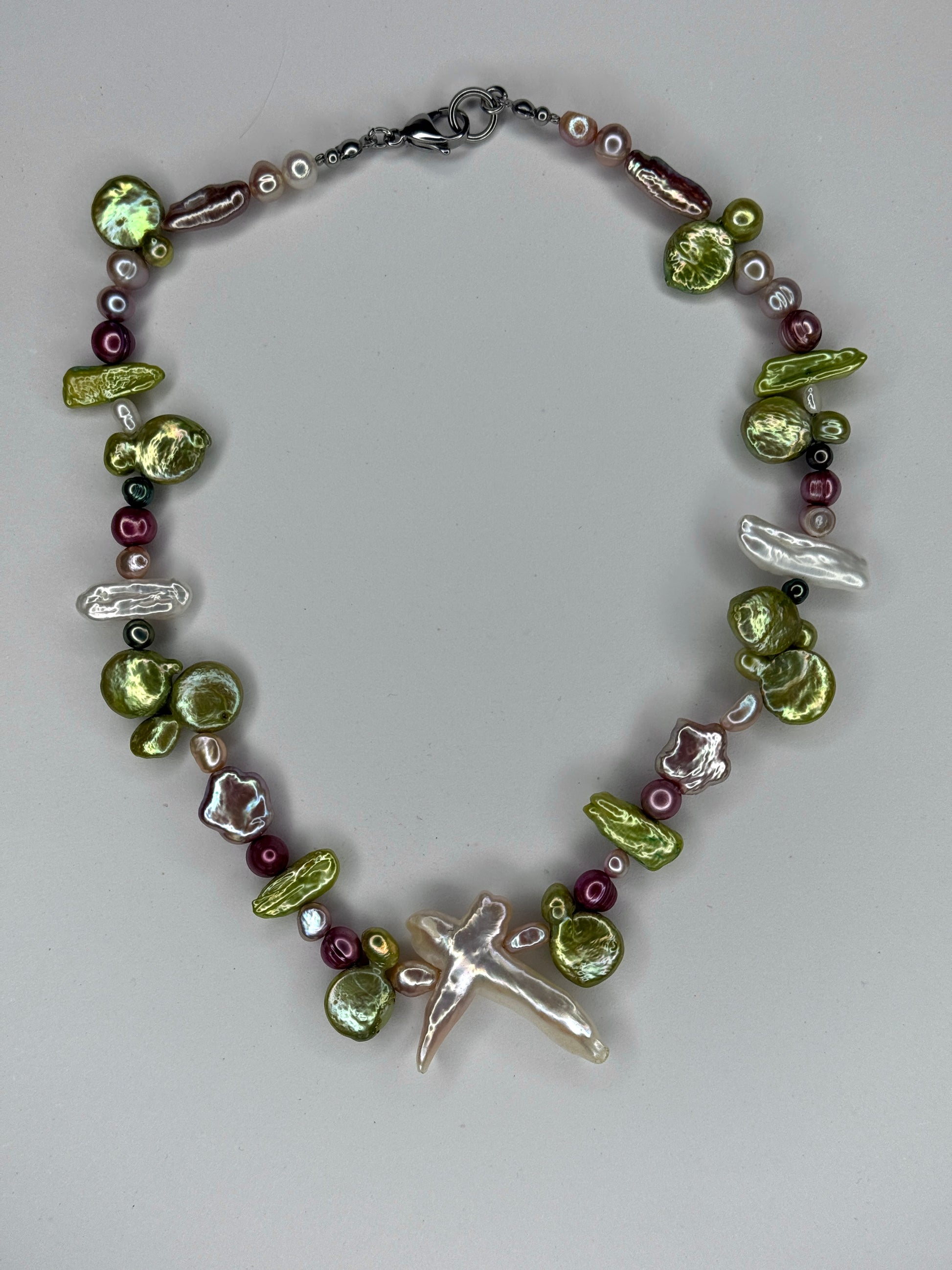 designed with high luster irregular baroque pearls, fireball baroque centerpiece, baroque cross pearl, pink stick pearl, freshwater pearls,