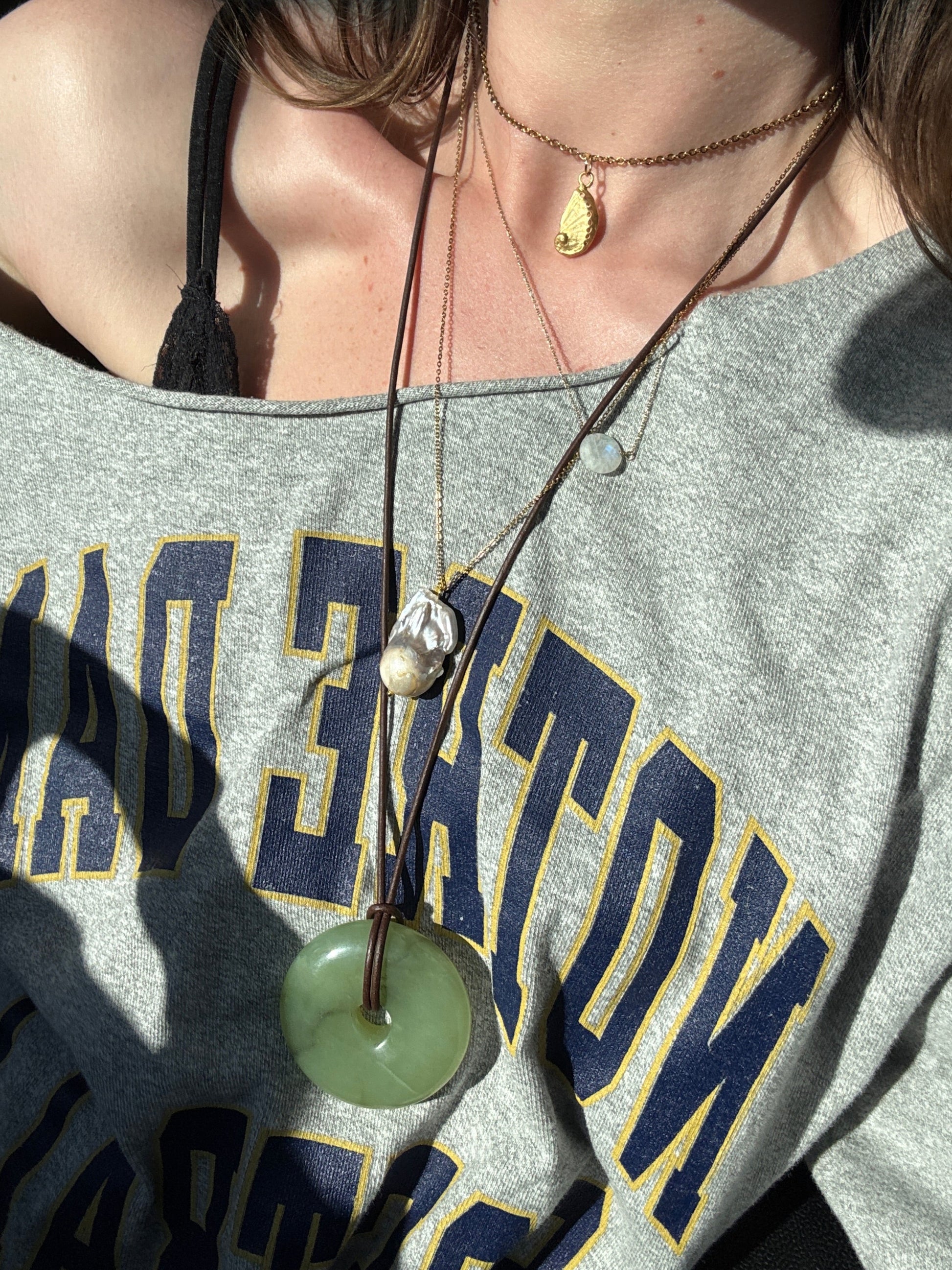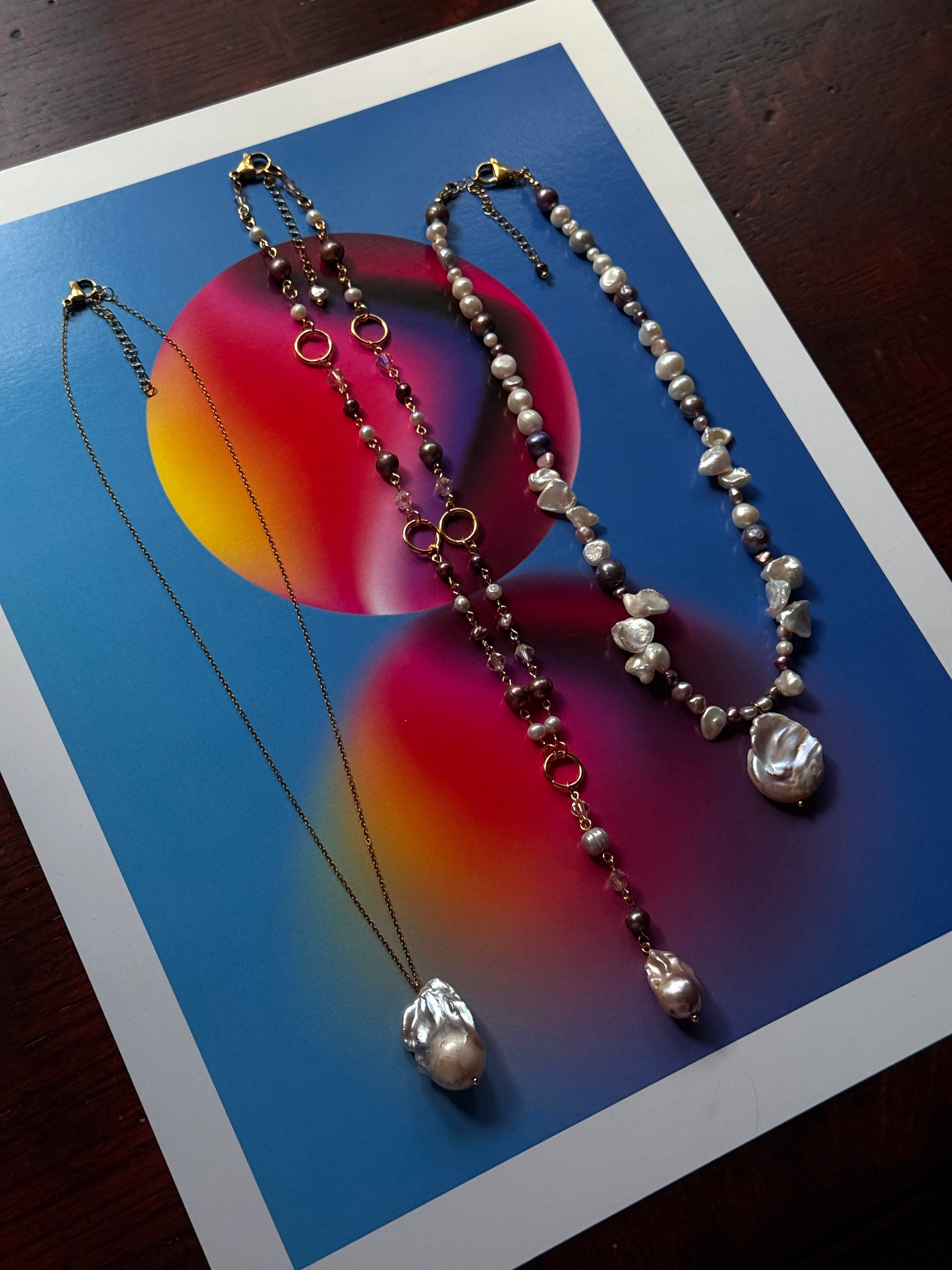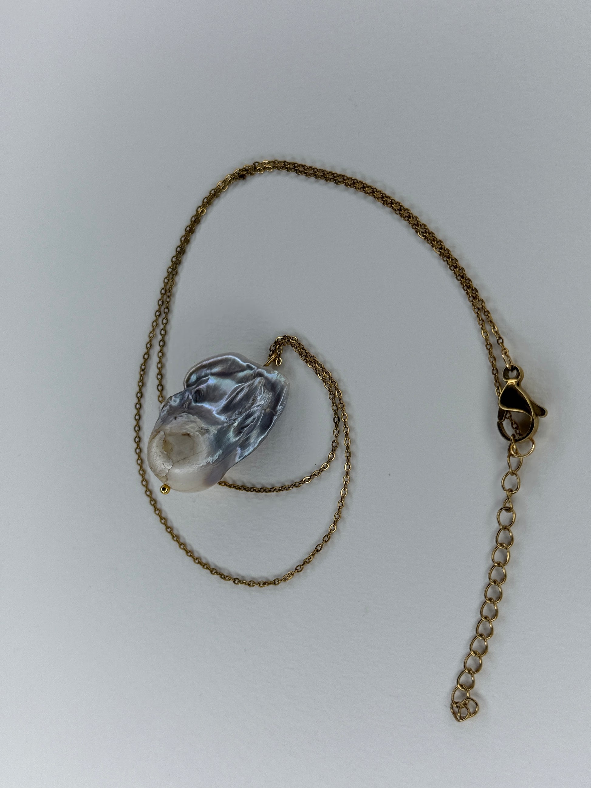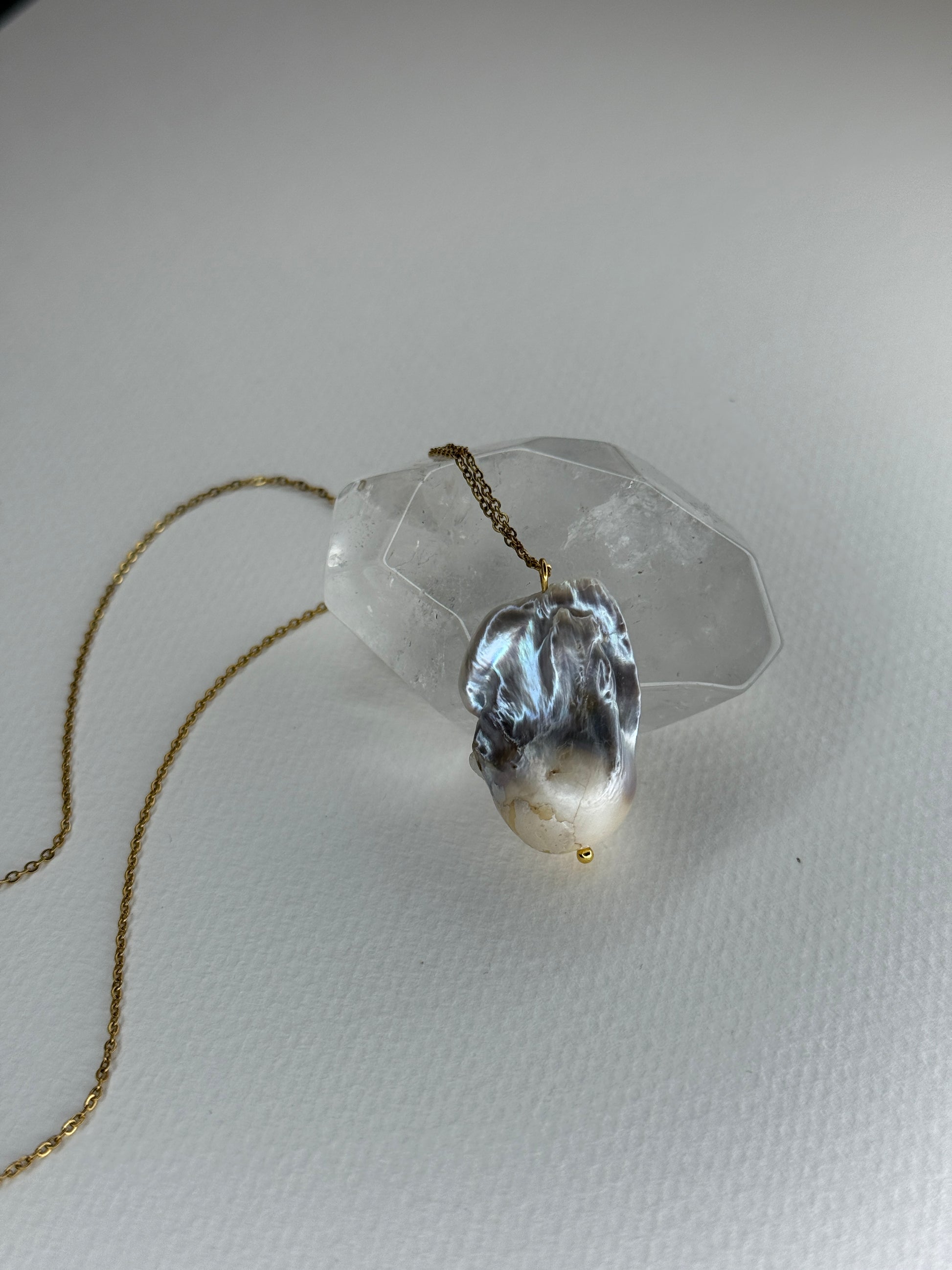 unique silver fireball baroque pearl, on 18k gold plated stainless steel chain