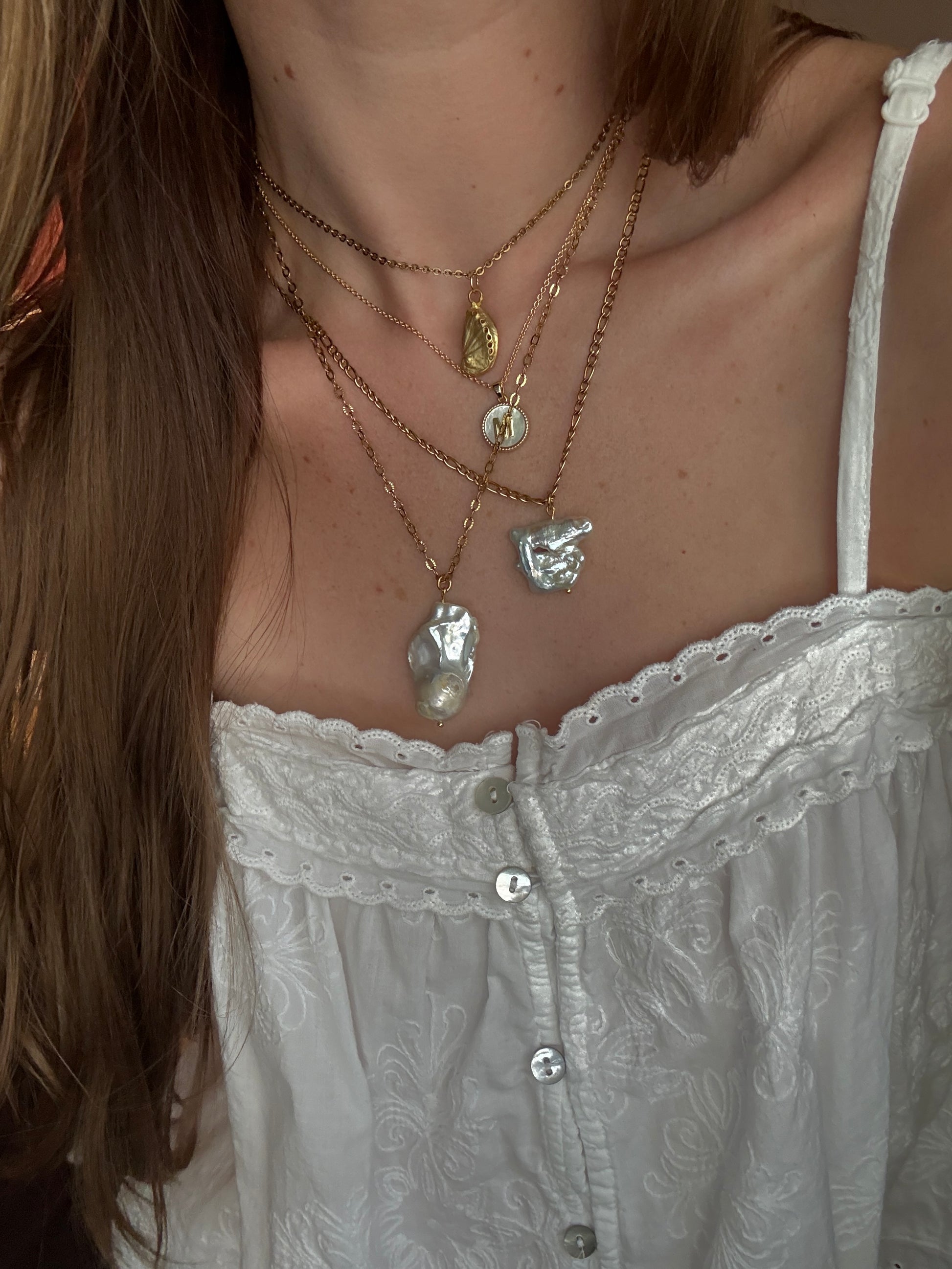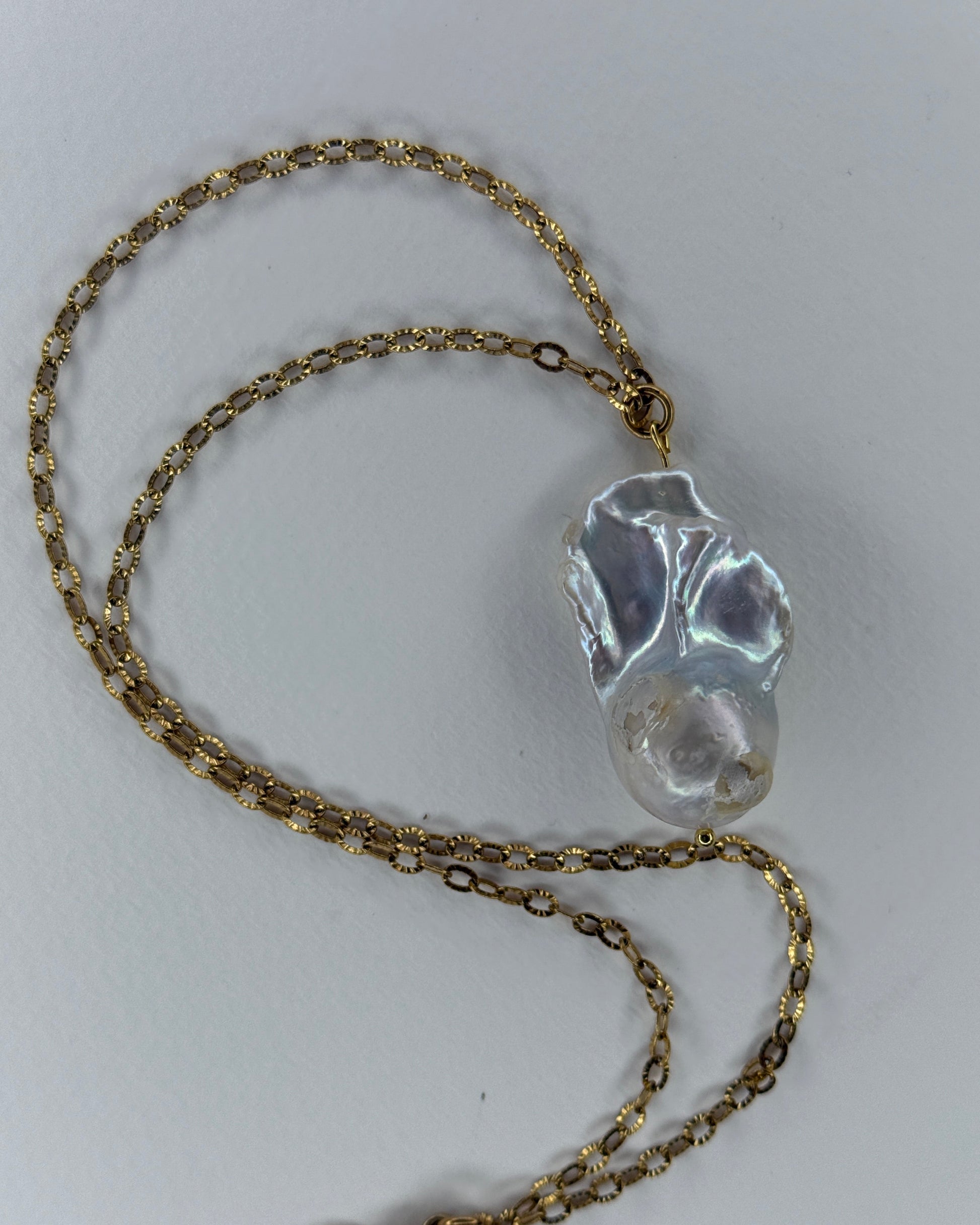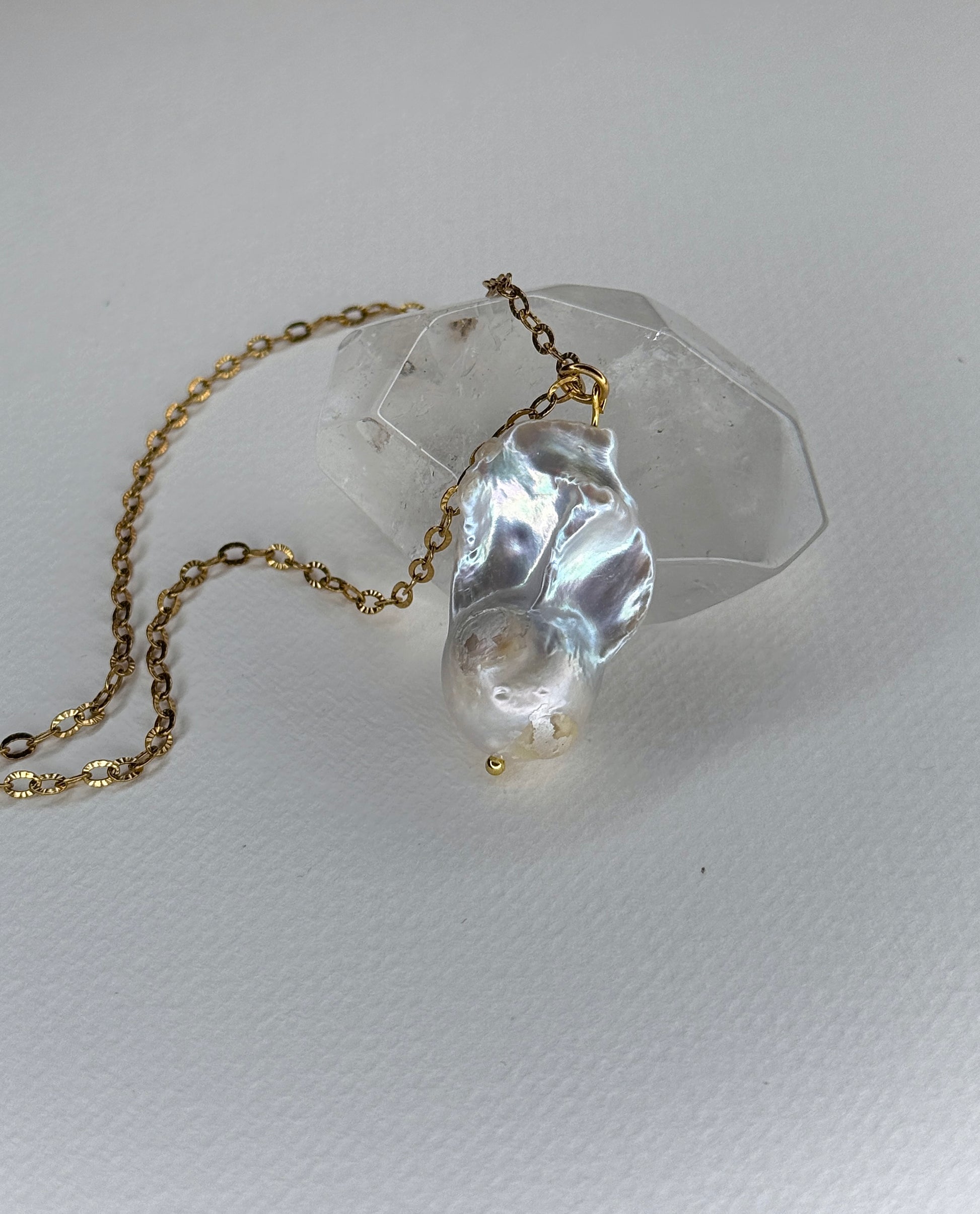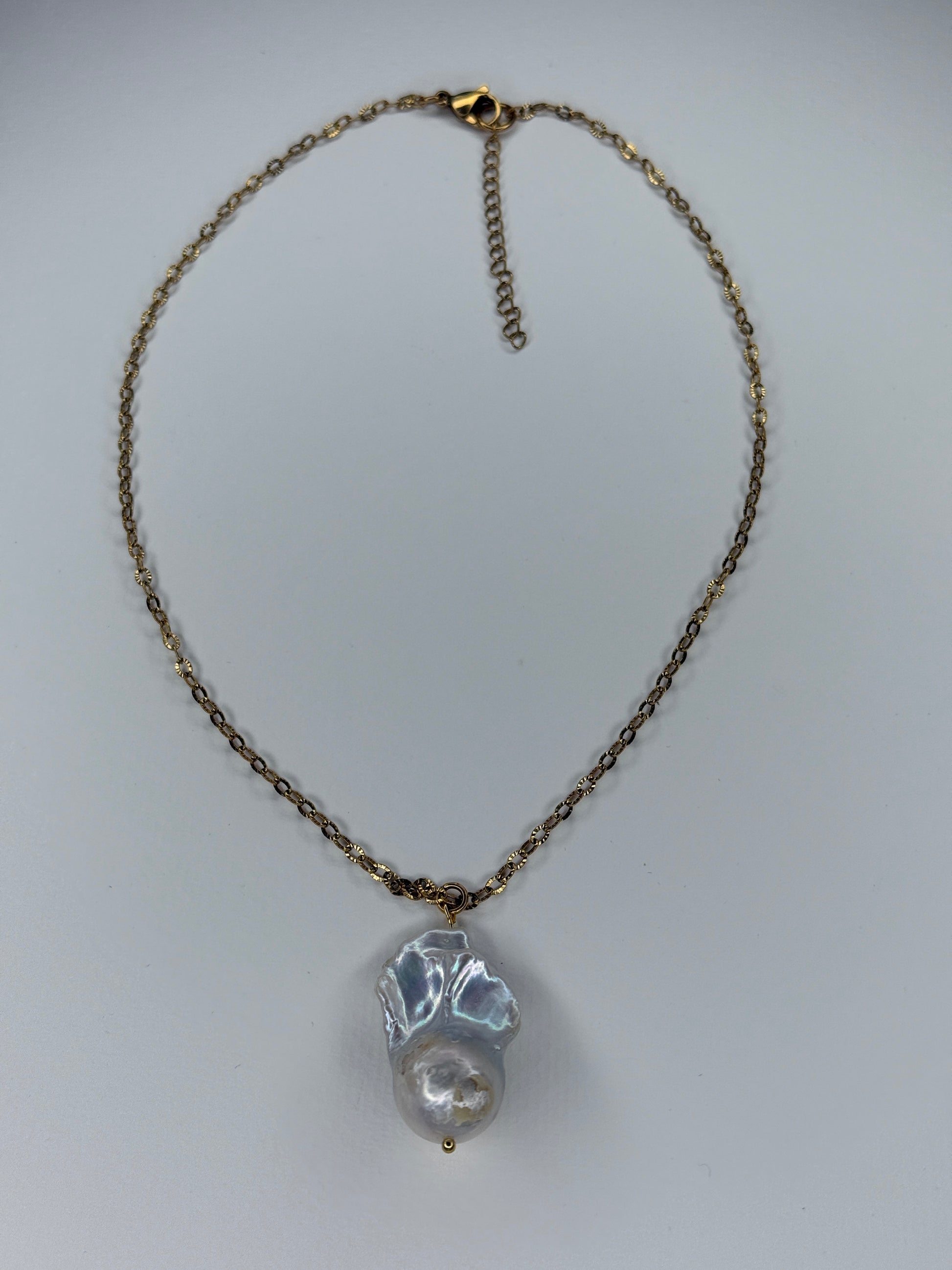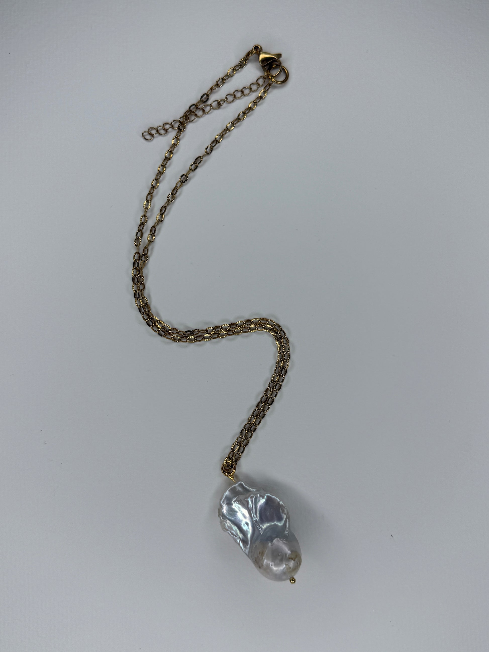 unique silver fireball baroque pearl, on 18k gold plated stainless steel chain