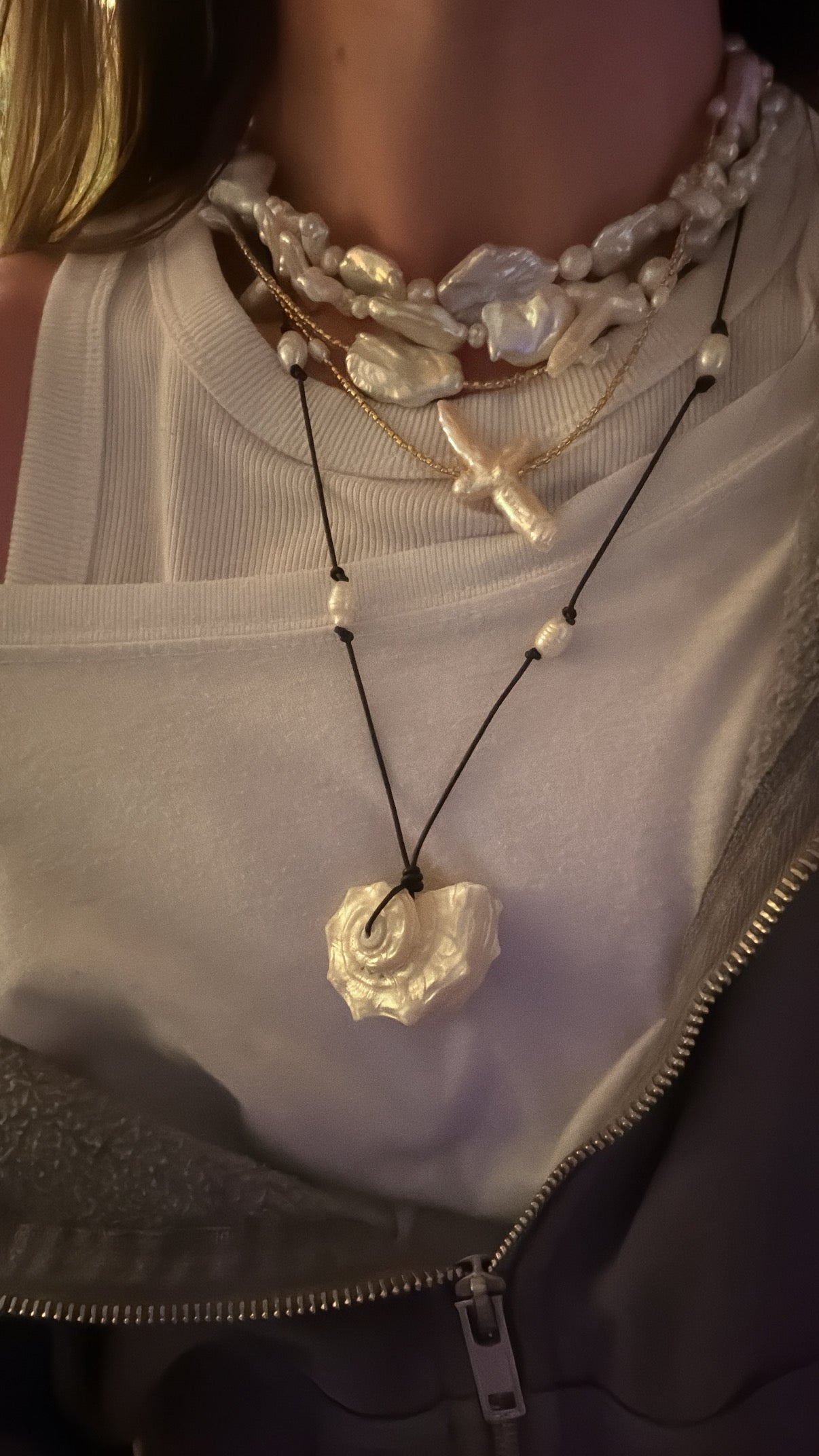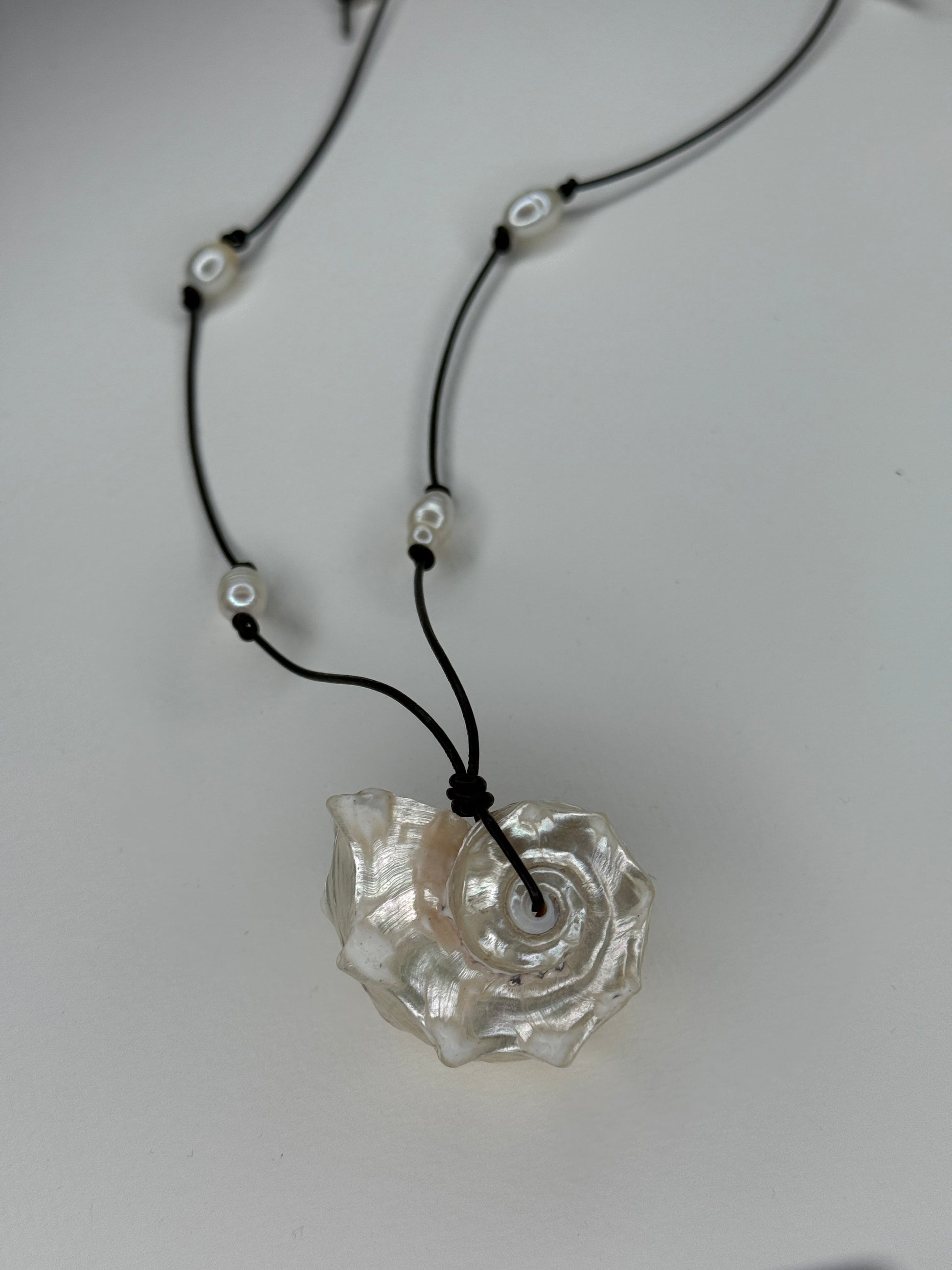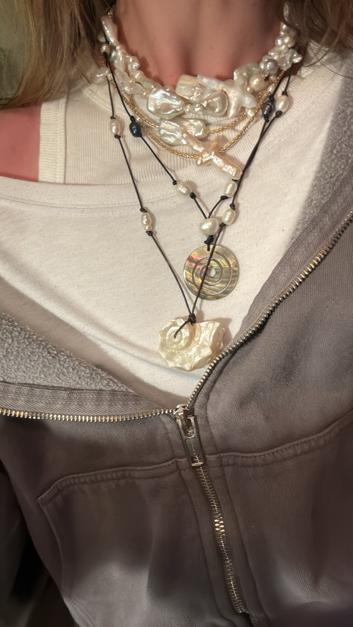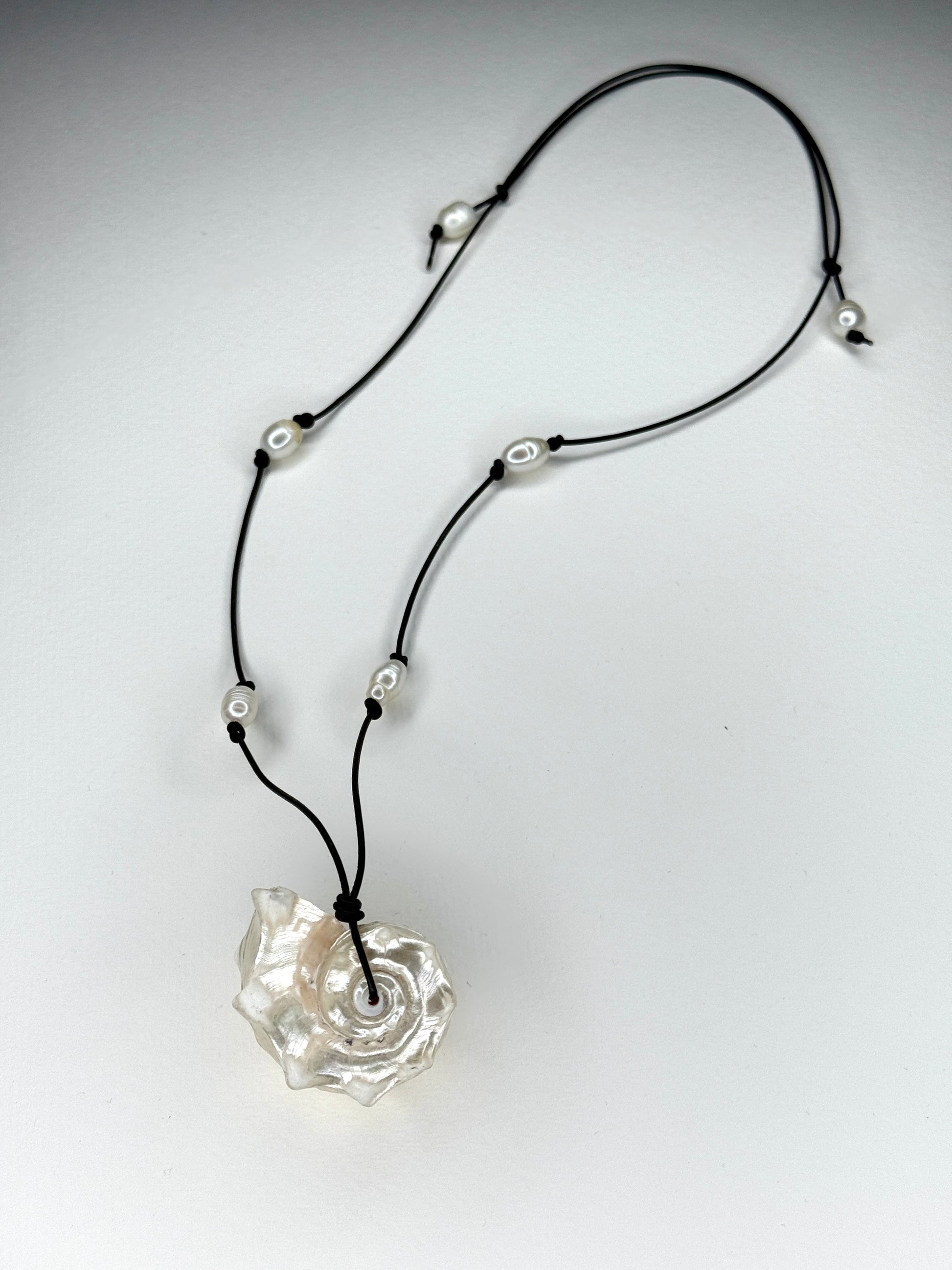 natural deep brown leather with freshwater pearls and slide knots for adjustable length